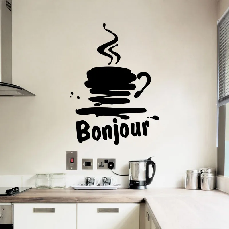 Stickers Muraux Bonjour Cafe Cup Vinyl Wall Art Decal Cuisine Mural Wallpaper Kitchen Home Decor Living Room Decoration Wall Stickers Aliexpress