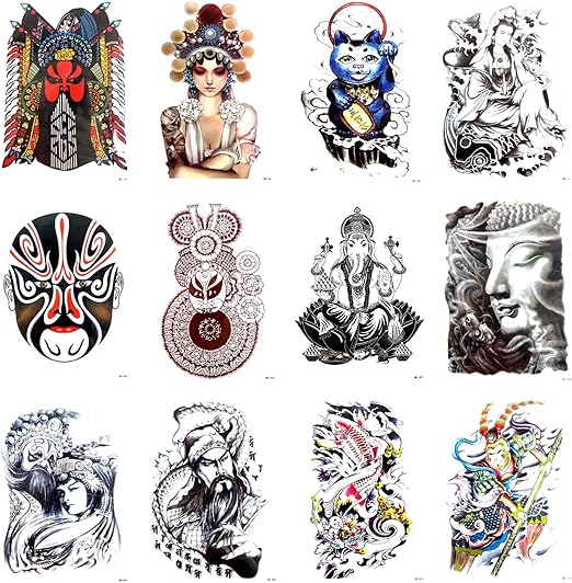 Amazon Com 10 Sheets Monkey King Maneki Neko Buddha Large 8 25 Half Sleeve Arm Tattoo Fake Tattoos For Sale Clothing