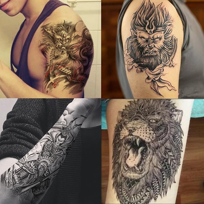 Amazon Com Dalin 4 Sheets Temporary Tattoos The Monkey King Lion Qilin Beauty