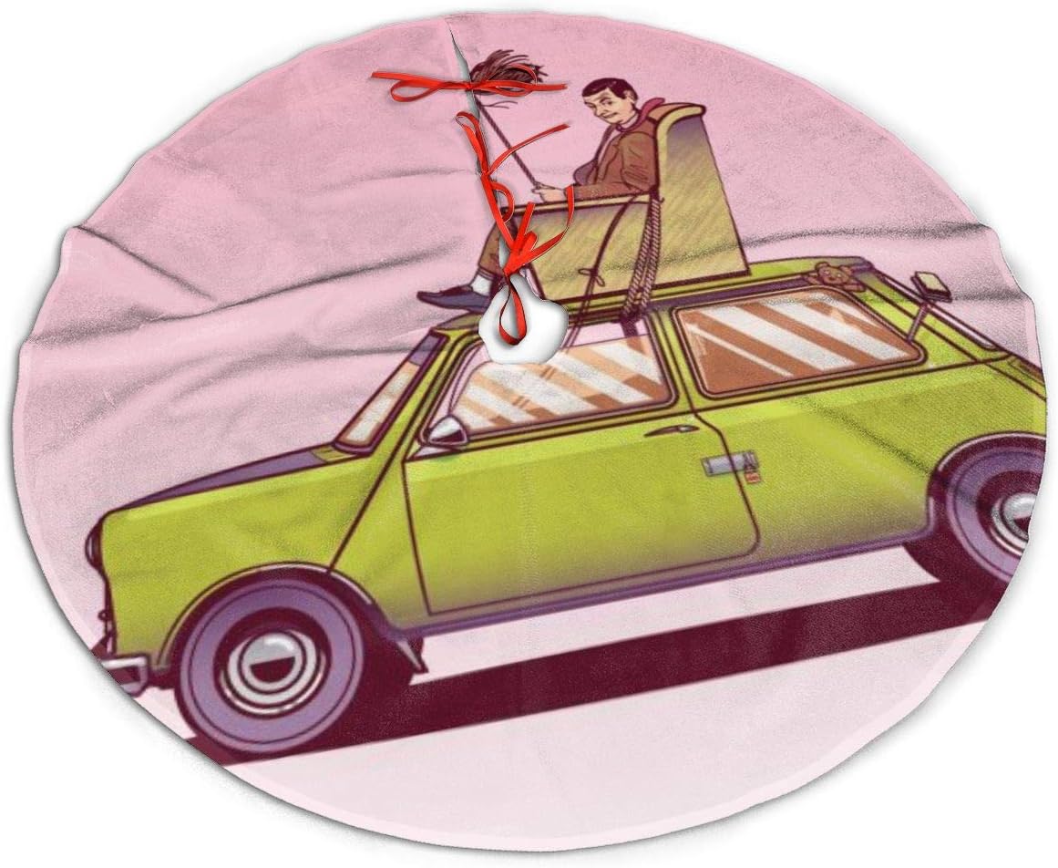 Amazon Com S0us Christmas Tree Skirt Mr Bean Sitting On Top Of His Car Vector Art Xmas Tree Skirt For Christmas Decorations Home Kitchen