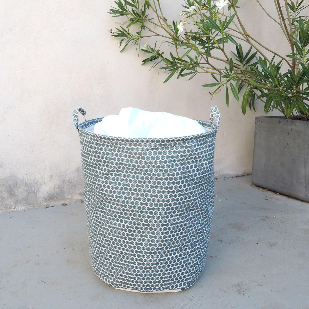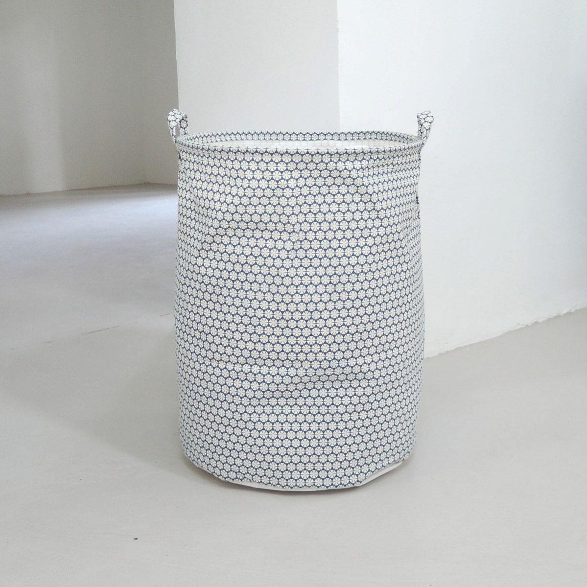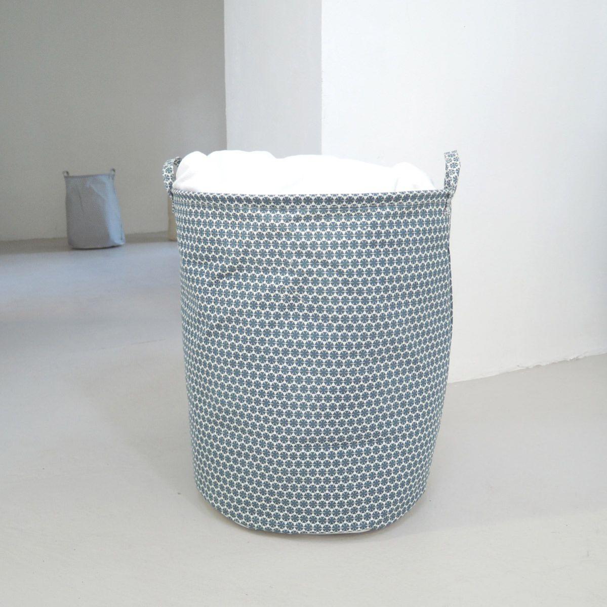 Panier A Linge En Tissu Motif Bleu Tissu Diametre 40 Cm Hauteur 50 Cm Leroy Merlin