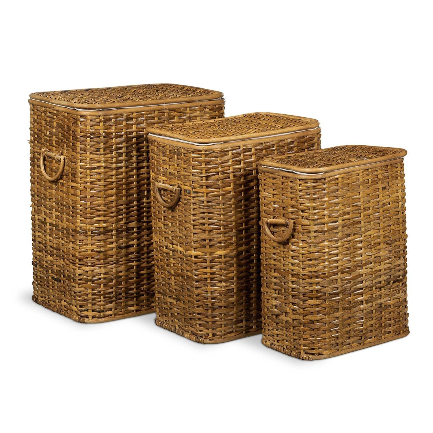 Lot De 3 Panier Corbeille A Linge En Rotin Empilable Avec Sac Brun Clair Leroy Merlin