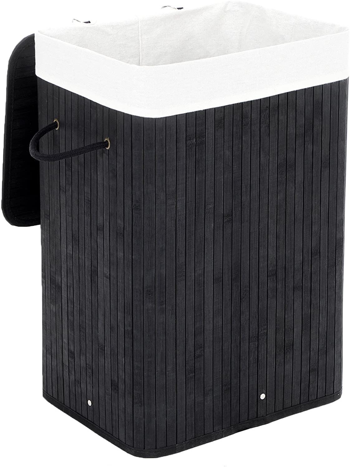 Panier A Linge En Bambou Pliable Avec Sac Amovible Lavable Noir 12 Leroy Merlin