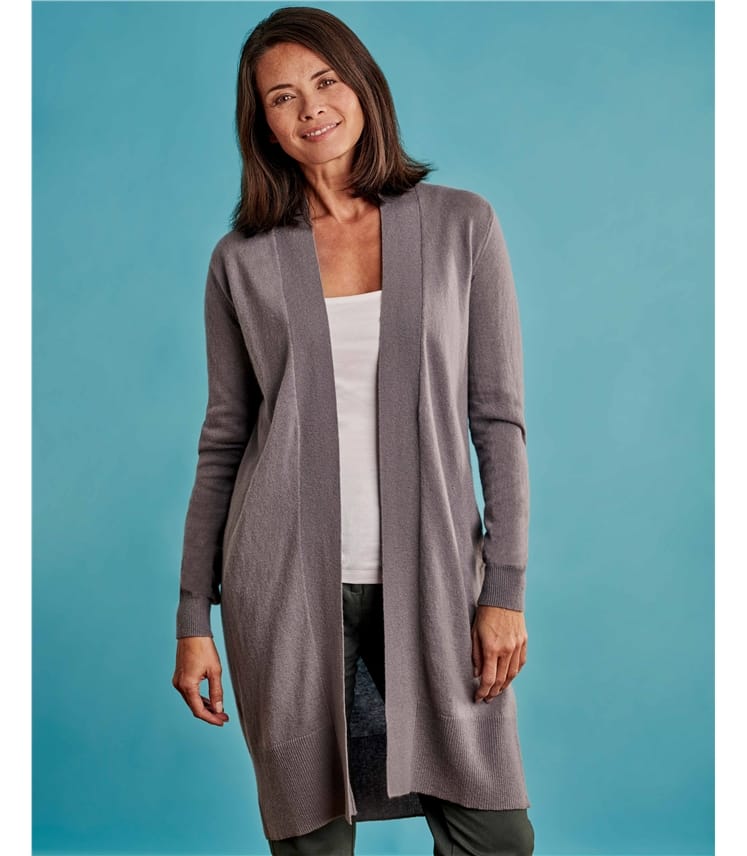 Gris Solide Gilet Long Ouvert Femme Cachemire Merinos Woolover Fr