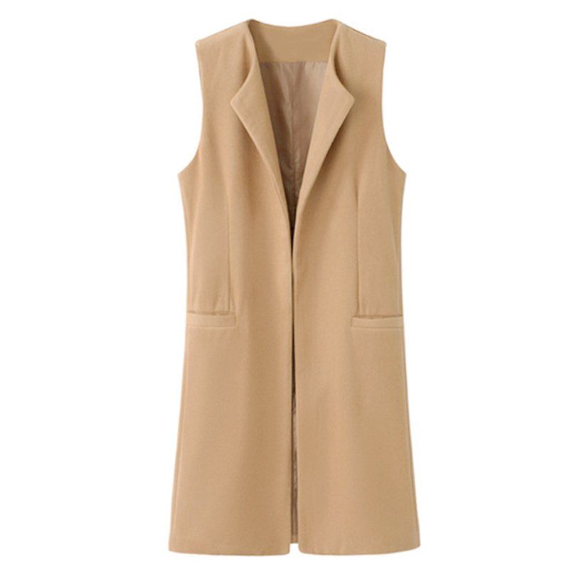 Gilet En Melange De Laine Pour Femmes Gilet Long Lady Office Wear Gilet Sans Manches Plus La Taille En Camel Brown Rosegal Com France