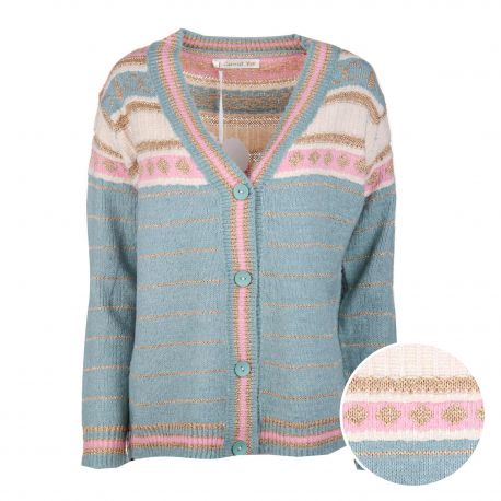 Gilet Long Manches Longues Raye Graphique Laine Femme Care Of You A