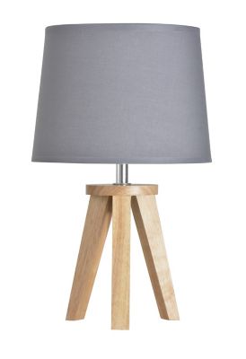 Lampe A Poser Scandinave Trepied En Bois Avec Abat Jour Rond Tissu Gris Stativ L Acces Design Com