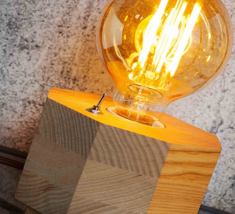 Lampe A Poser Design Bloc De Bois Fonce Ampoule Edison Teardrop Jurassic Light