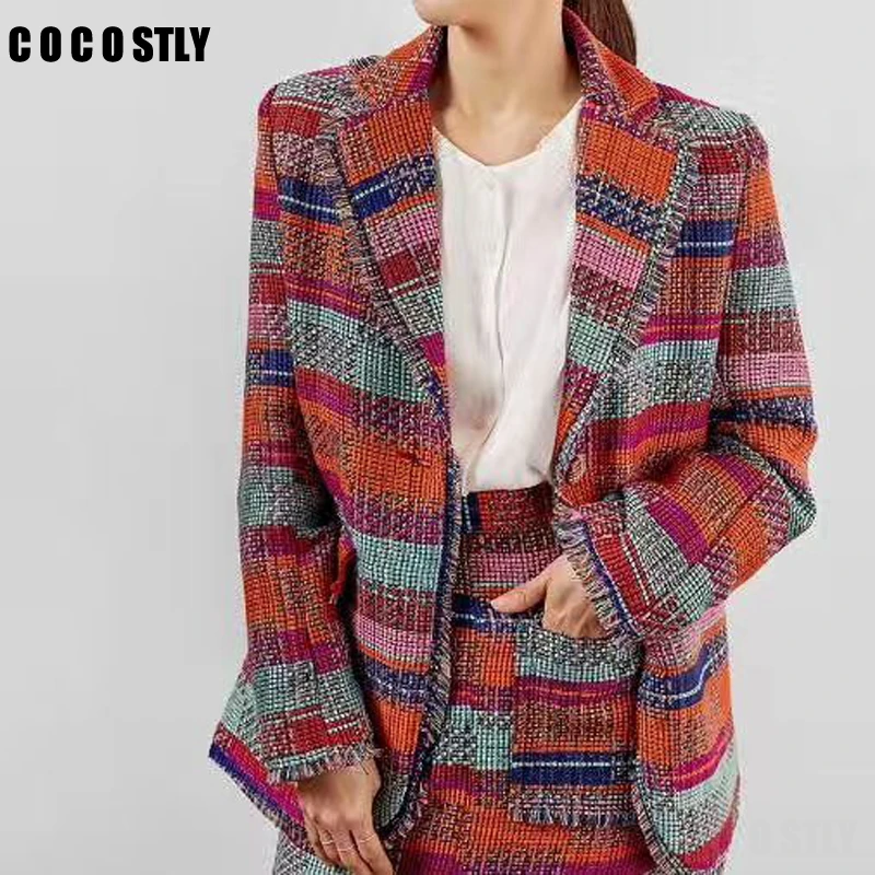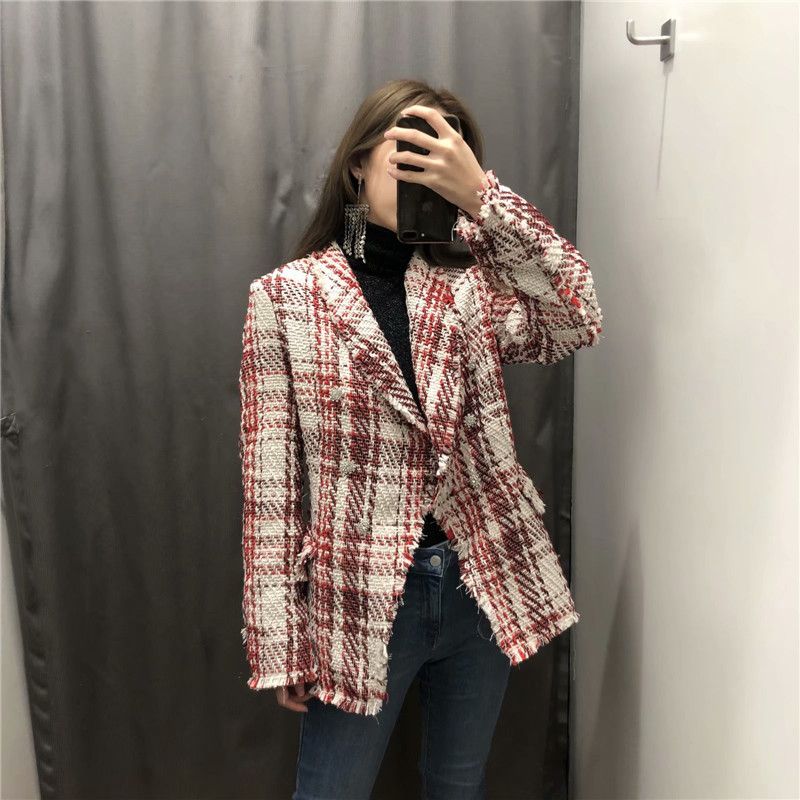 Korea Style Vintage Red Plaid Tweed Blazer Women Coat Single Button Tassel Suit Jacket Winter Casual Blazer Femme Slim Outwear Blazers Aliexpress