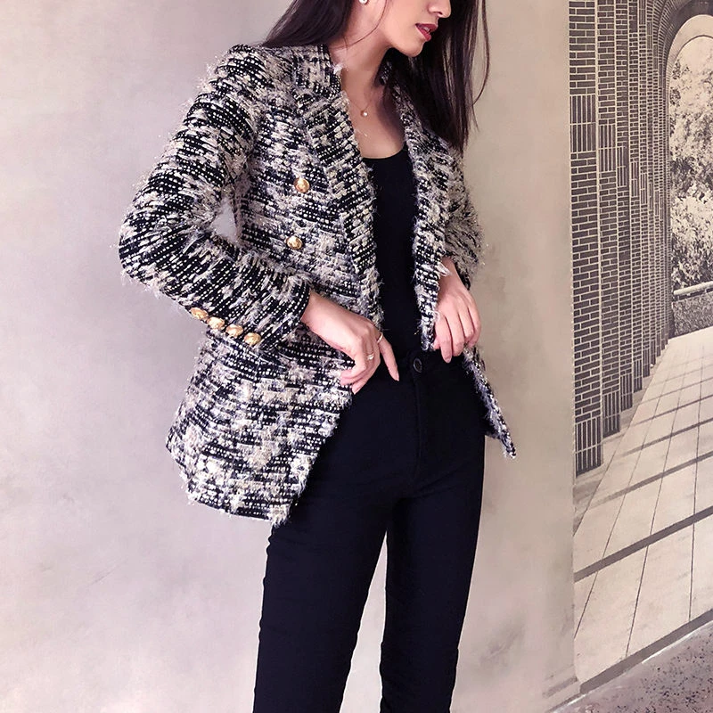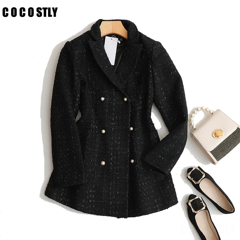 Solid Black Tweed Blazer Women 19 Spring Autumn Double Breasted Notched Collar Tweed Suits Office Ladies Female Blazer Coat Blazers Aliexpress