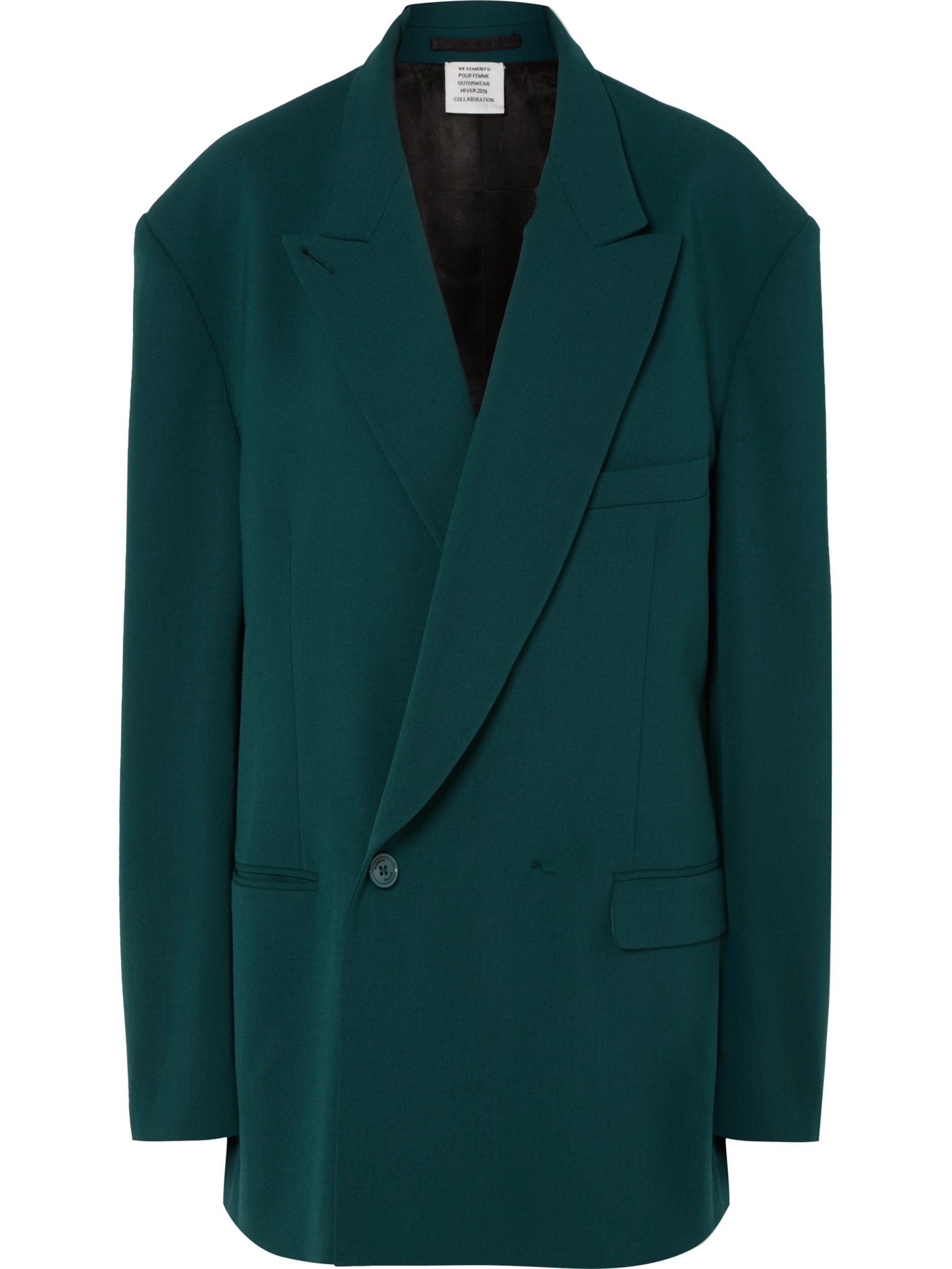 Forest Green Oversized Houndstooth Double Breasted Tweed Blazer Vetements Net A Porter