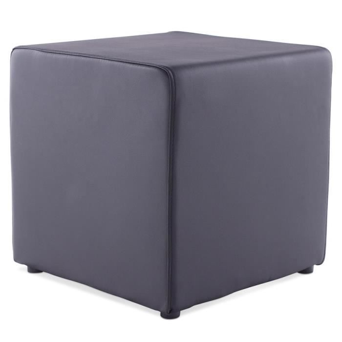 Como Tabouret Pouf Carre En Simili Cuir Noir