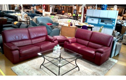 Salon 3pl 1 Pouf Cuir Bordeaux Occasion Troc Ou Cash