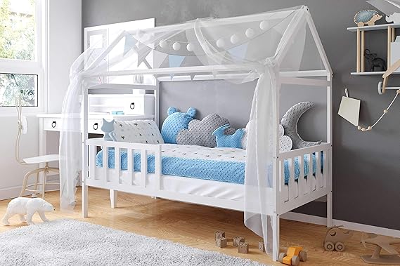 Lit Montessori Blanc Pour Enfant 90x0 Cm Lit Cabane Lit Maison Lit Tipi Bois Massif Lit Enfant Chambre Enfant Chambre Bebe Deco Chambre Enfant