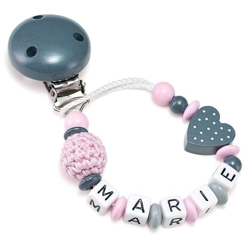 Attache Tetine Personnalisee Pour Bebe Fille Et Garcon Nombreux Modeles Et Couleurs Coeur Perle Au Crochet Rose Gris Amazon Fr Handmade