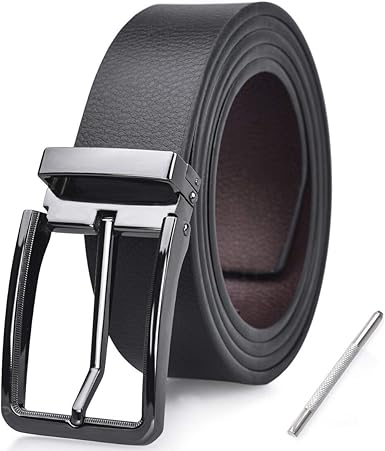 Ceinture Homme Cuir Noir Marron Ajustable Reversible Boucle Metal