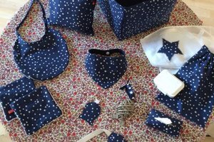 By merveilles et dans mon entourage l'occasion pour moi de faire des petits kits de naissance faits !. Que vous soyez future maman ou que vous ayez simplement envie d'offrir de jolis cadeaux de naissance personnalisés, c'est l'occasion rêvée de vous mettre à la couture et de concevoir une garde. Coudre un cadeau de naissance fait main est un des privilèges de la couturière Coudre pour bébé est un plaisir immédiat, rapide, et tellement positif Une petite puce est arrivée chez ma cousine juste avant le confinement, je n’avais pu la voir avant fin aôut, aussi ce fut un plaisir de réaliser ces quelques bricoles le kit complet.