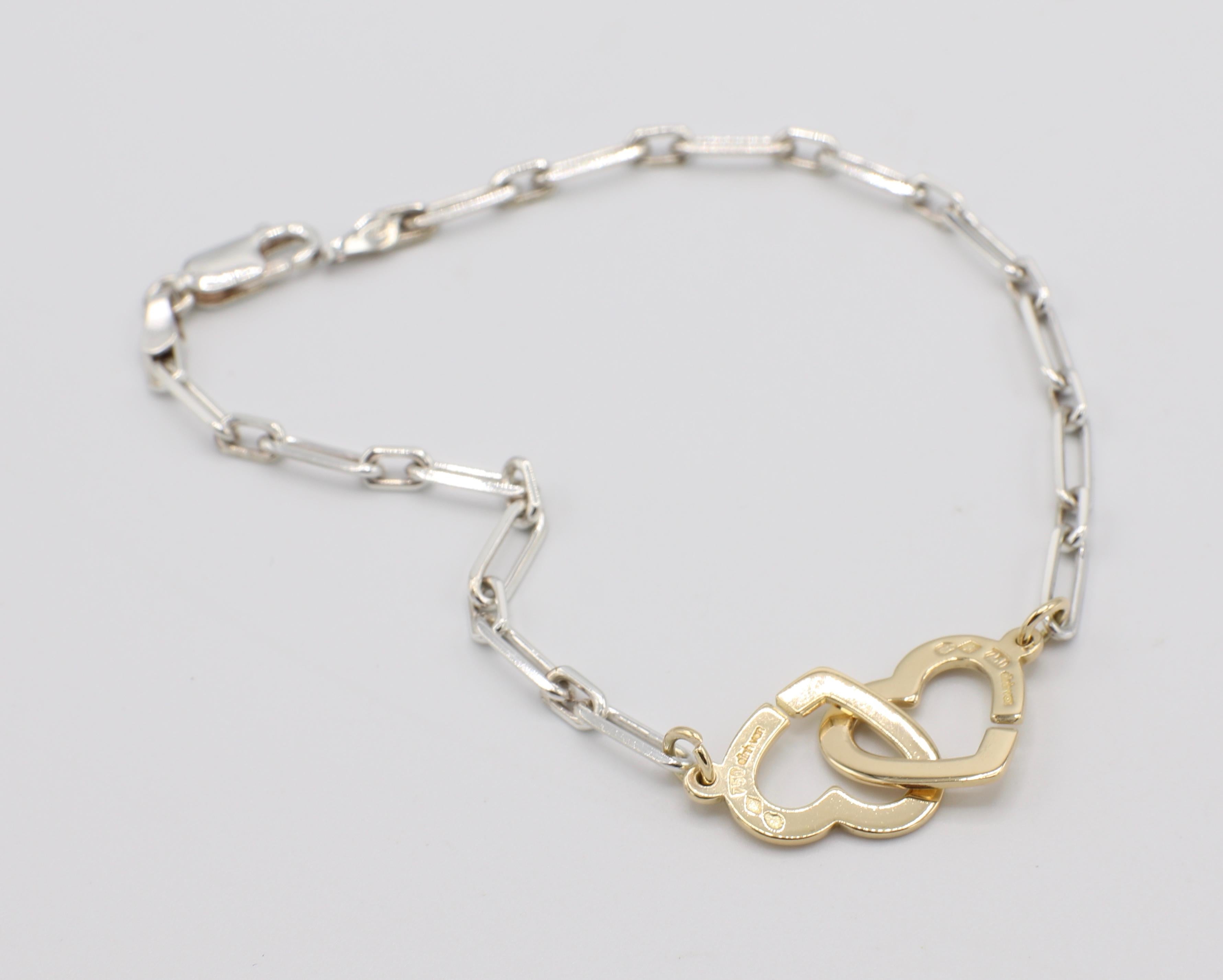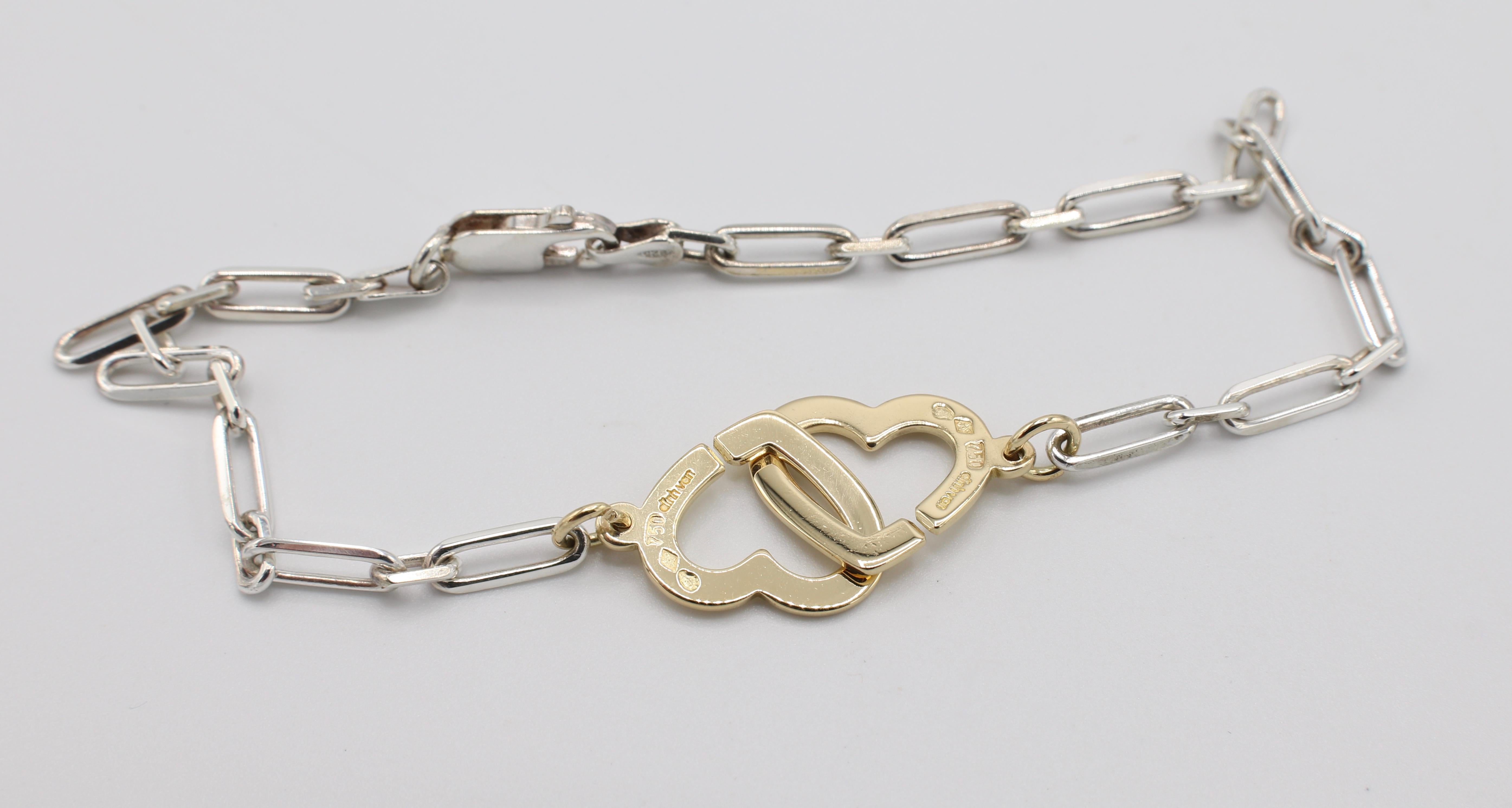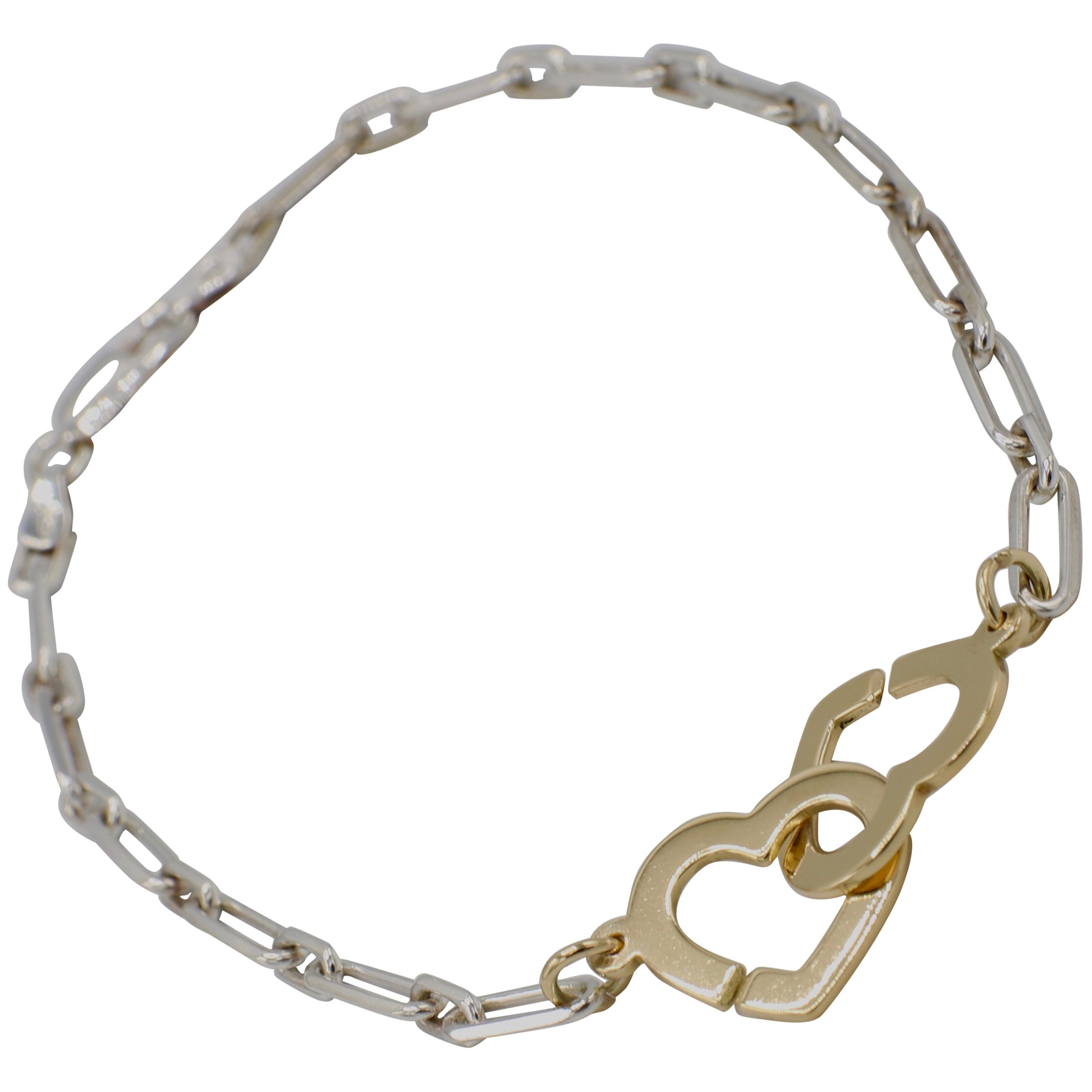 Dinh Van 18 Karat Gold And Sterling Silver Double Coeur Heart Chain Link Bracelet For Sale At 1stdibs