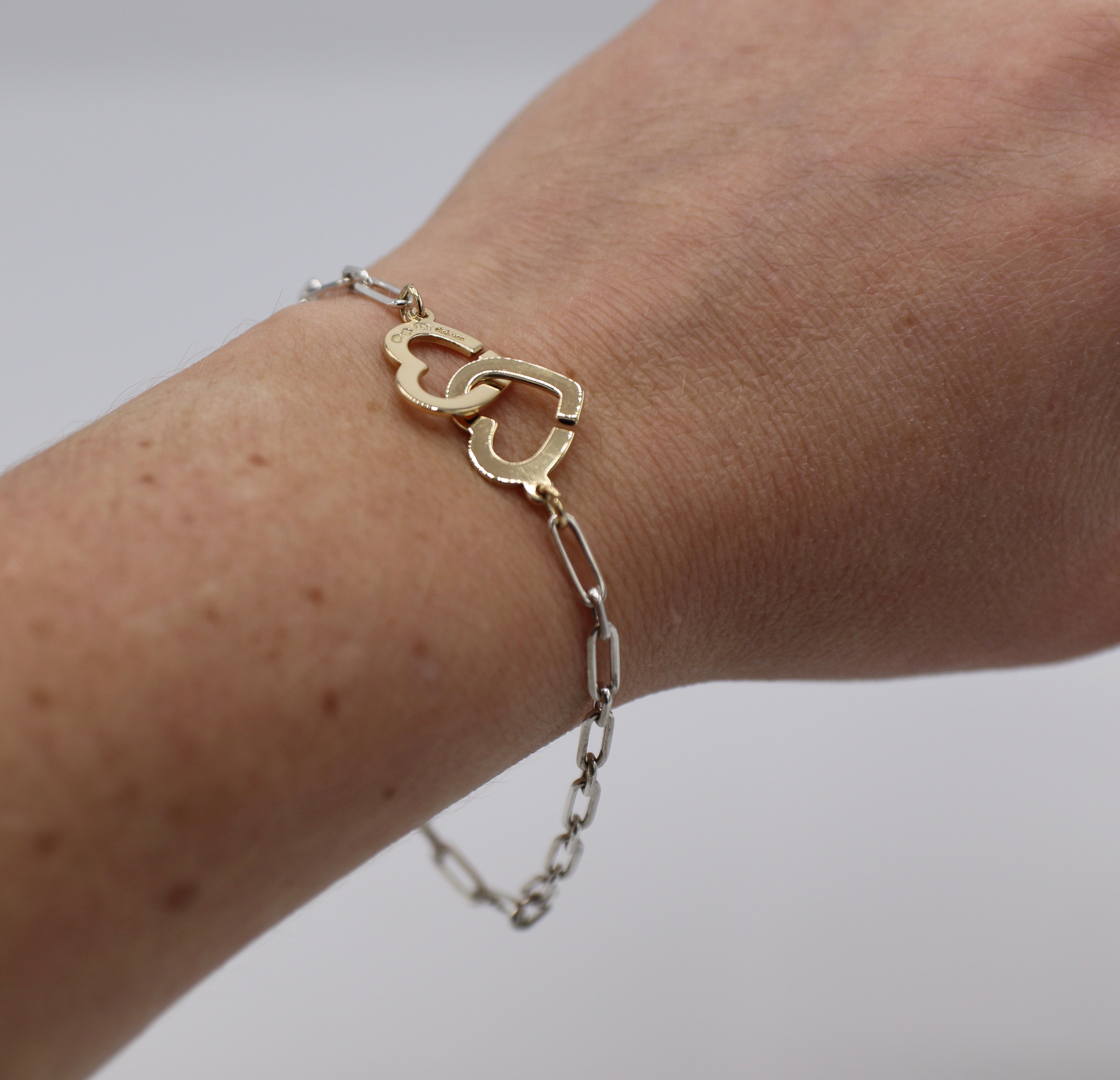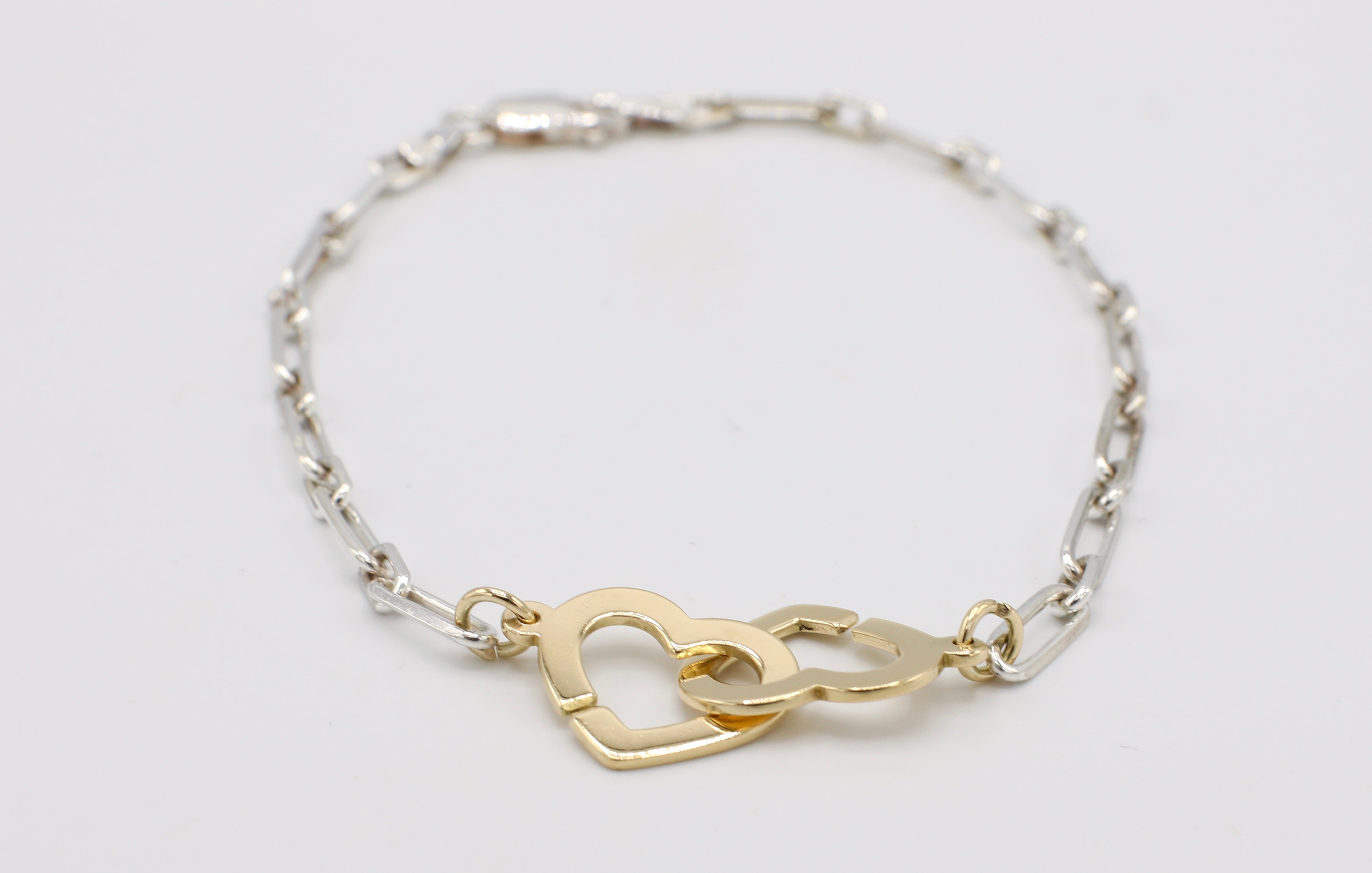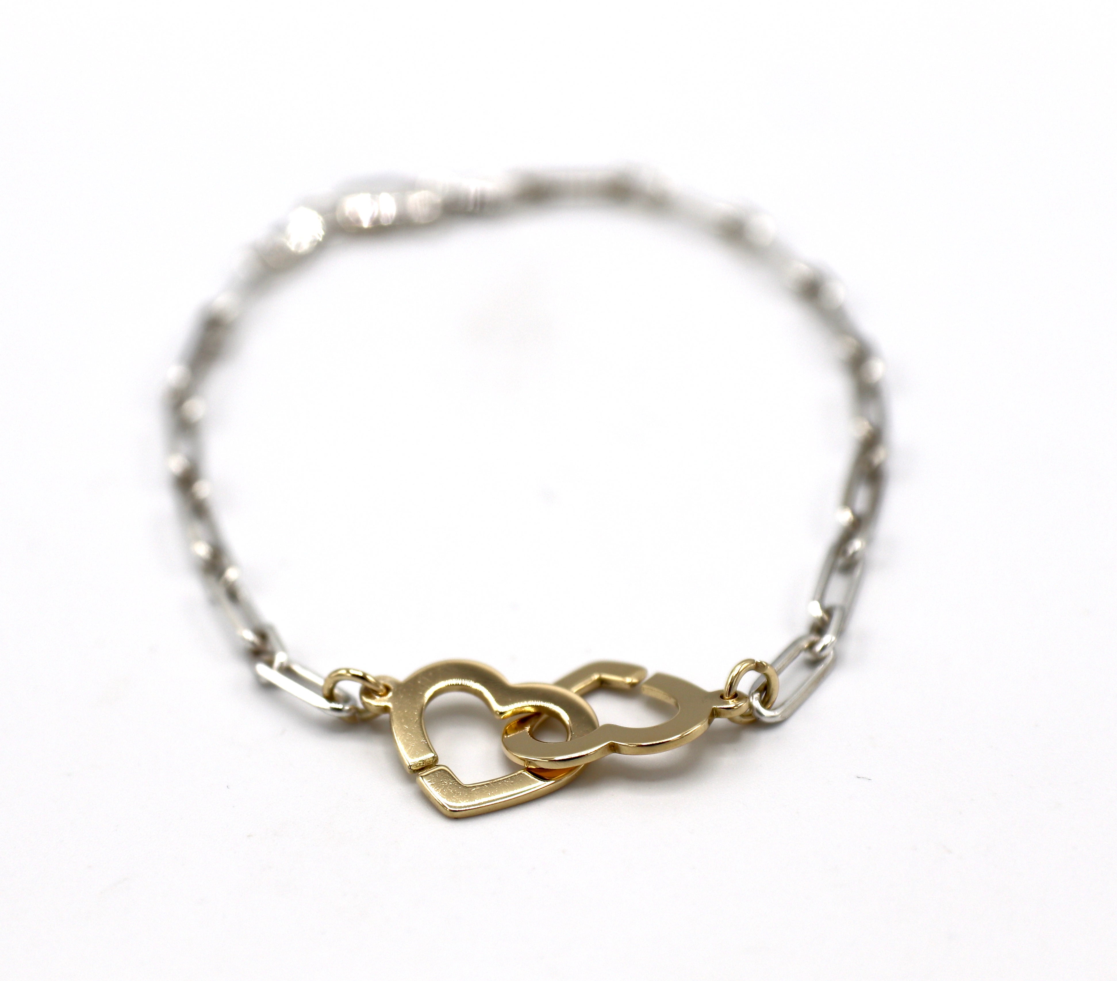 Dinh Van 18 Karat Gold And Sterling Silver Double Coeur Heart Chain Link Bracelet For Sale At 1stdibs