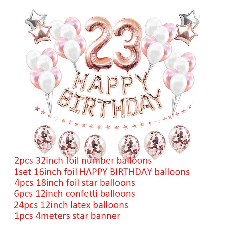 38pcs Number 23 Birthday Balloons 23th Happy Birthday 23 Years Old Party Decorations Man Woman Supplies 32th 32 Years Birthday Ballons Accessories Aliexpress