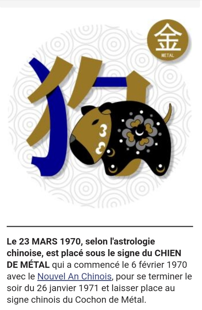1970 Annee Du Chien De Metal Signe Astrologique Chinois Chine Informations
