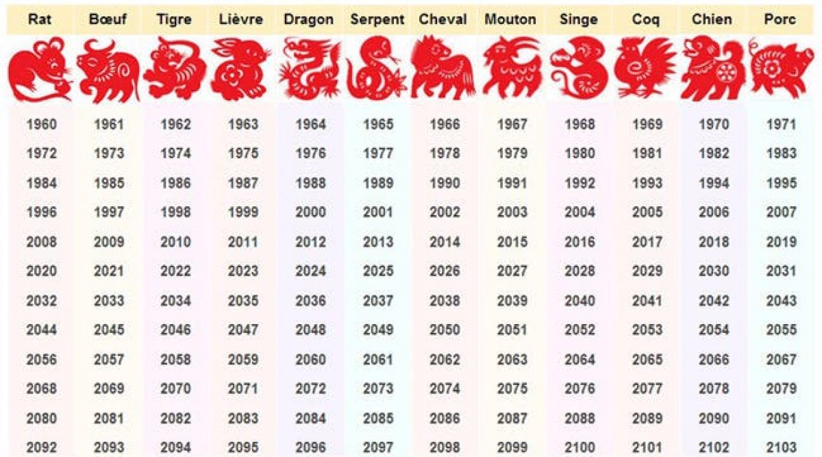 Votre signe du zodiaque chinois est déterminé par votre année de naissance Donc, si vous êtes né en 1991 – votre signe astrologique Chinois est Chèvre – car cette année est l’année du Chèvre dans le calendrier lunaire chinois L’année 15 est également placée sous le signe du Chèvre. Dans l'horoscope chinois, les signes astrologiques sont au nombre de 12Ils sont annuels et symbolisés par des animaux qui se succèdent dans un ordre précis Le zodiaque chinois est un cycle de 12 ans et chaque année est placée sous l'un de ces 12 signesAinsi, contrairement à l'astrologie occidentale qui se déploie sur les 12 mois qui constituent une année, l'astrologie chinoise, elle. Chien, bœuf, rat, serpent, cochon, etc, si les signes du zodiaque chinois sont loin de pouvoir déterminer à eux seuls qui vous êtes réellement, ils permettent tout de même de mettre en lumière certains traits de votre personnalité !.