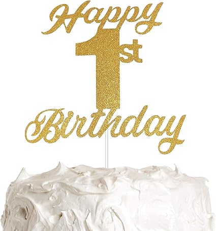 Amazon Com 1st Birthday Cake Topper One Cake Topper 1st Happy Birthday Party Decoration With Premium Gold Glitter Toys Games
