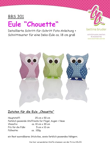 s 301 Patron De Couture Doudou Fotoanleitung Bettina Frere Hibou Amazon Fr Cuisine Maison