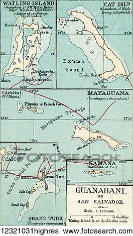 Carte De Guanahani Ou San Salvador Projection Watling Ile Ou Christophe Colomb Fait Landfall Dans 1492 Depuis Les Livre Vie De Christophe Colomb Par Clements R Markham Publie 12 Banque De Photographies
