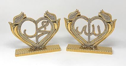Ensemble De 2 Pieces Decoratives Dorees Avec Inscription Allah Et Mohammed Decorees De Diamants Et De Fleurs Objet De Decoration Idee Cadeau Oeuvre Artisanale