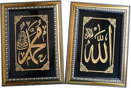 Tableau En Bois Dore Avec Calligraphies Allah Et Mohammed Pbdsl Objet De Decoration Idee Cadeau Oeuvre Artisanale
