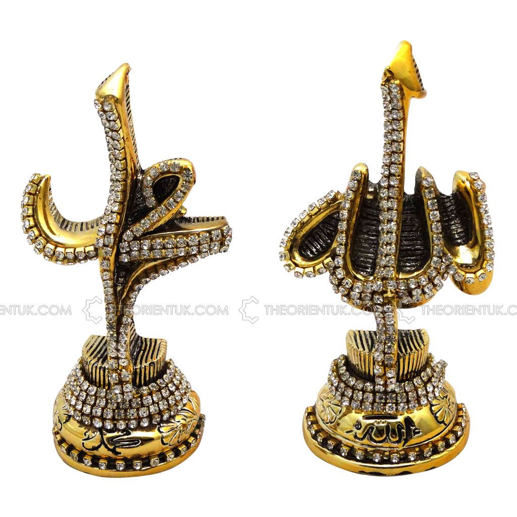 Ensemble De 2 Pieces Decoratives Dorees Avec Inscription Allah Et Mohammed Decorees De Diamants Blancs Objet De Decoration Idee Cadeau Oeuvre Artisanale