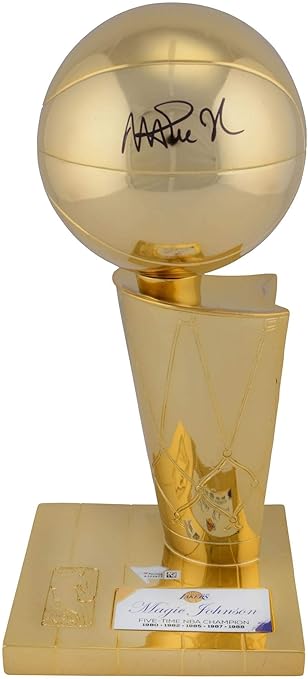Magic Johnson Los Angeles Lakers Autographed Nba Finals Champion Replica Larry O Brien Trophy With Sublimated Plate Nba Autographed Miscellaneous Items At Amazon S Sports Collectibles Store