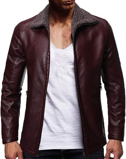 Veste Motard En Pu Cuir Homme Pas Cher Blouson Hommes Poignets Zippes Manteau Hommes Col Cheminee Parka Vetements Rakuten