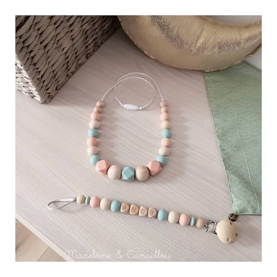 Duo Maman Bebe Attache Sucette Collier Allaitement Cadeau Etsy