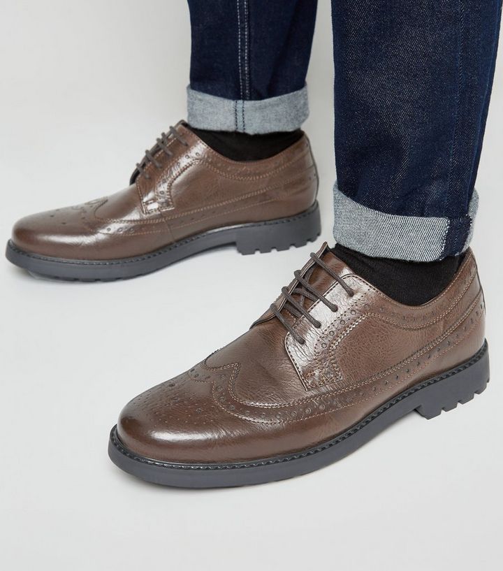 Chaussures Richelieu Marron Fonce A Semelle Compensee New Look