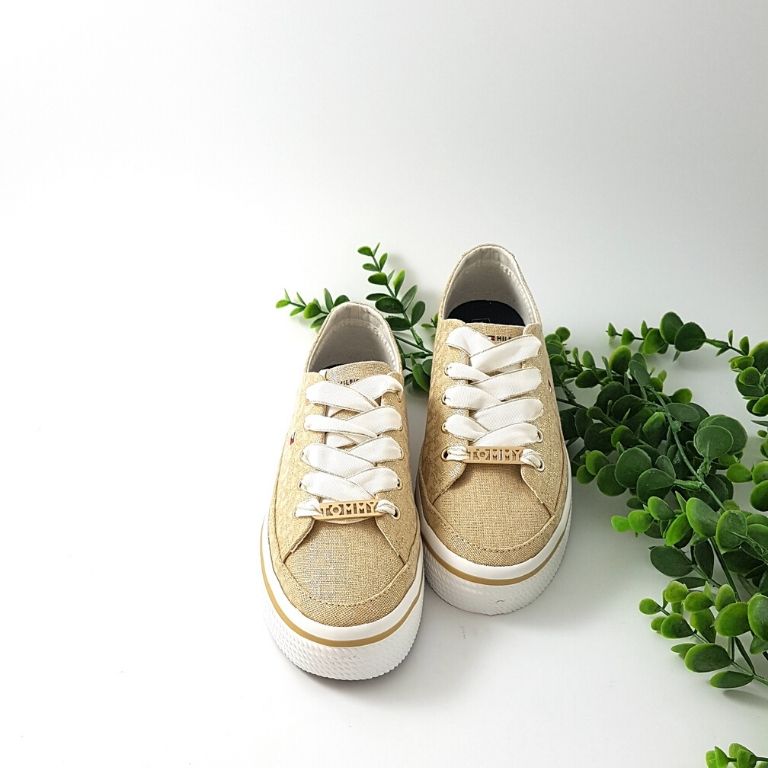 Baskets Tommy Hilfiger Doree A Semelle Compensee Chaussures Traces