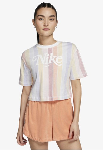 Shop Nike Women S Sportswear Retro Femme Striped Crop T Shirt In Pink
