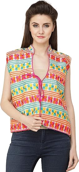 Exotic India Afterglow Phulkari Gilet Court De Punjab Avec Mul Blanc Casse Amazon Ca Vetements Et Accessoires