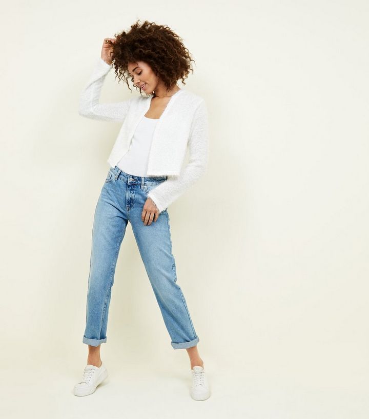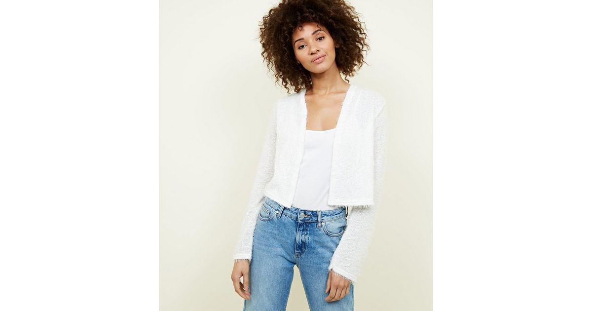 Weekday Hillevi Cardigan Court Et Duveteux A Coupe Carree Blanc Casse Asos