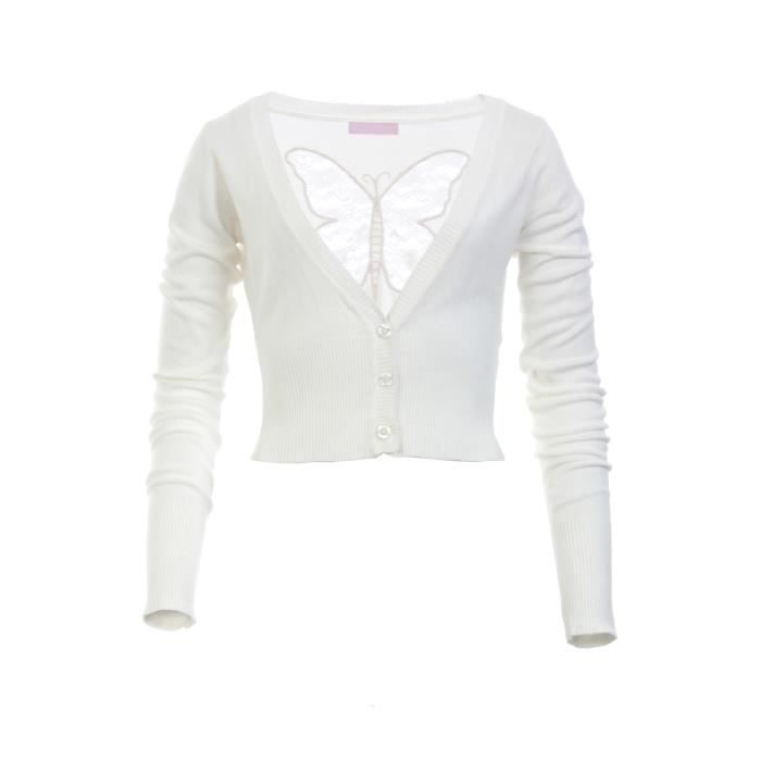 Gilet Court Avec Papillon Dans L Blanc Casse Achat Vente Gilet Cardigan Soldes Sur Cdiscount Des Le Janvier Cdiscount
