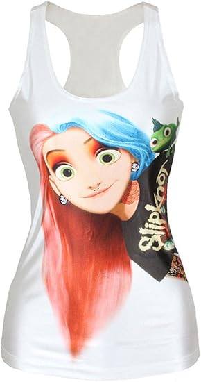 Debardeur Top Blanc Imprime Raiponce Gothique Slipknot Disney Japan Attitude Vettop312