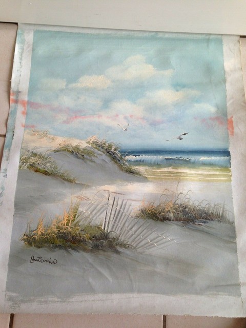 Tableau Peinture Originale Toile A Encadrer Decor Mer Marine Plage Mouettes Ebay
