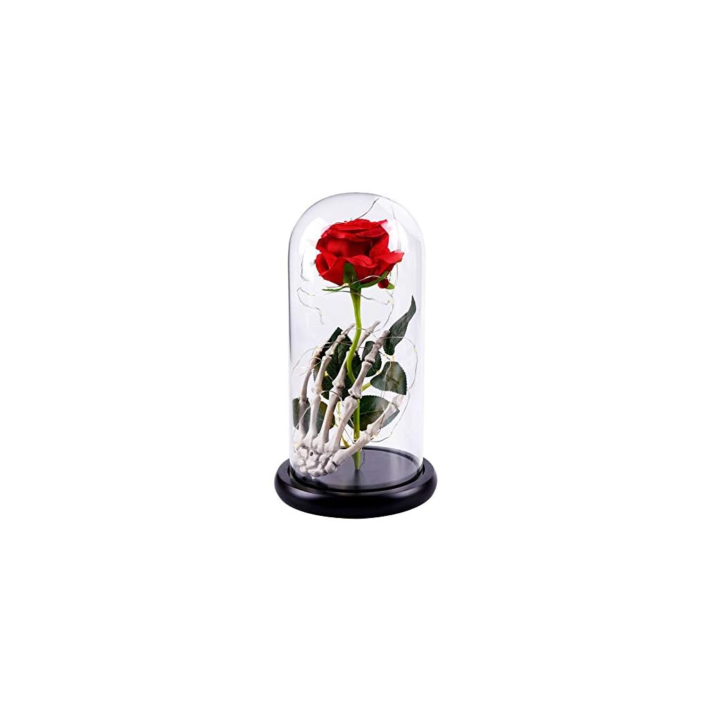 Norbi Beauty And The Beast Rose Skull Hand Led Light With Eternal Flower Rose In Glass Dome On Paint Base Gift For Valentine S Day Christmas Wedding Anniversary Birthday Silk Flower