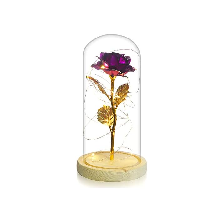 Beferr Beauty And The Beast Rose Enchanted Flower With Led Light In Glass Dome For Christmas Valentine S Day Mother S Day Birthday Best Gifts For Girlfriend Wife Women Purple Foil Flowers Plants Com