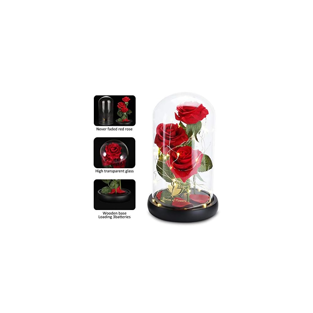 Amazon Com Shirylzee Eternal Flower Beauty And The Beast Rose Fake Flowers Enchanted Rose In Glass Dome Rose Lamp Gifts Led Light Romantic Home Decor Gifts For Valentine S Day Mother S Day Wedding Anniversary