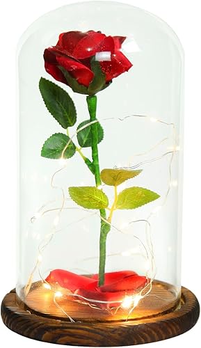 Amazon Com Urbanseasons Beauty And The Beast Rose Red Silk Rose That Lasts Forever In A Glass Dome With Led Lights Gift For Mothers Day Valentine S Day Wedding Anniversary Kitchen Dining