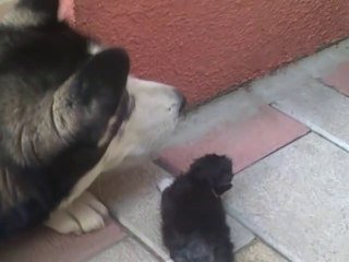 Ce Husky Protege Un Petit Chaton Adorable Sur Orange Videos