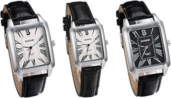 Jewelrywe Montre Homme Et Montre Femme Pas Cher A Quartz Avec Bracelet En Cuir Et Cadran Carre Echelle En Chiffres Romains 3pcs Amazon Fr Montres