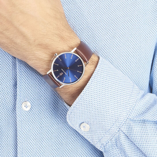 Montre Pierre Lannier 4g064 Cityline Boitier Acier Dore Poli Cadran Bleu Bracelet Cuir Brun Homme Sur Bijourama Montre Homme Pas Cher En Ligne